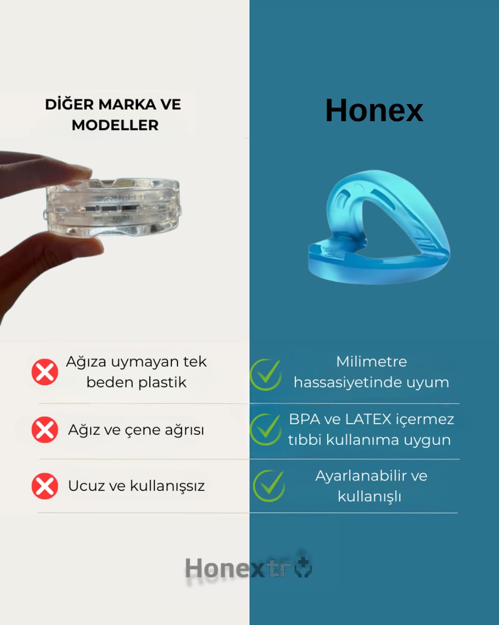 Honextr Ağızlık, diğer ürünlere göre daha etkili, rahat ve güvenli bir çözüm sunar.